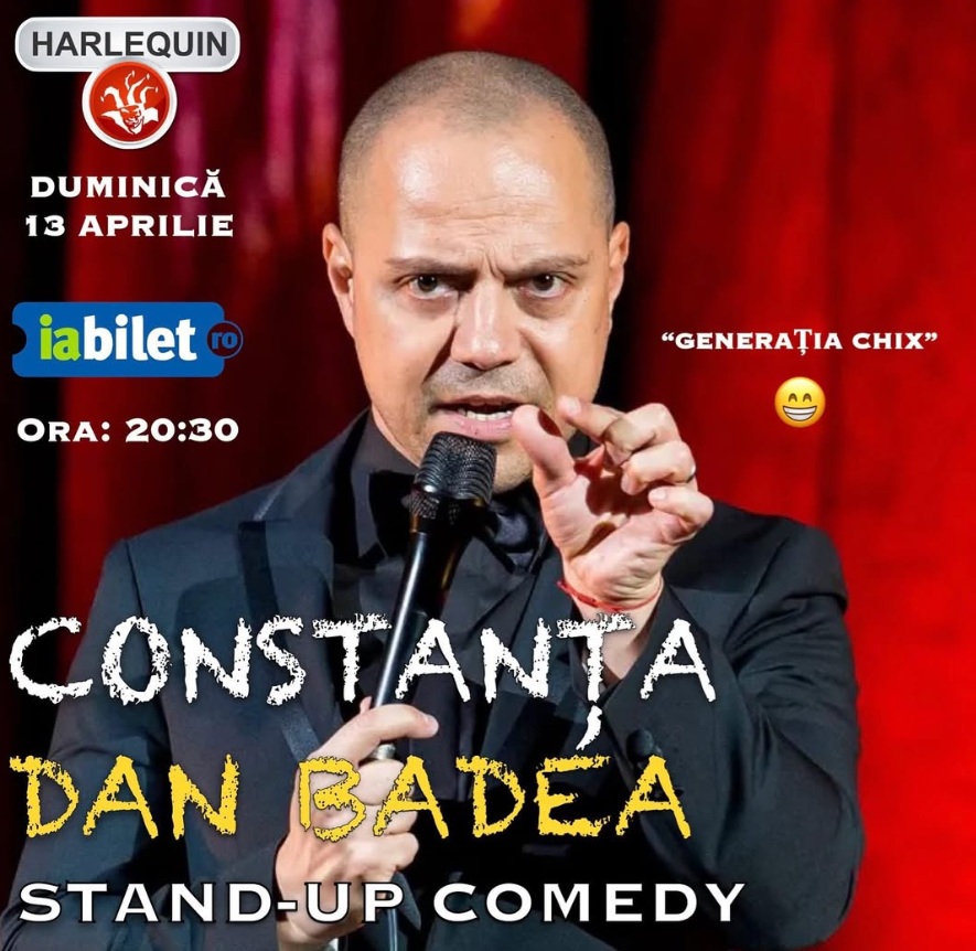 13/04/2025 @ 7:00 pm – 9:30 pm – 🌴 DAN BADEA revine la Harlequin By The Sea, duminică, 13 aprilie! Vino să te distrezi la un super show de comedie! Râsete și voie bună garantate! 😁🍹 ⚠️ 𝗕𝗶𝗹𝗲𝘁𝗲 𝗱𝗶𝘀𝗽𝗼𝗻𝗶𝗯𝗶𝗹𝗲 𝗽𝗲 𝗶𝗮𝗕𝗶𝗹𝗲𝘁 PS: „Tristețea este interzisă!” ❤️🎤 🎟BILETE : https://m.iabilet.ro/bilete-mamaia-stand-up-comedy-cu-dan-badea-generatia-chix-108900/